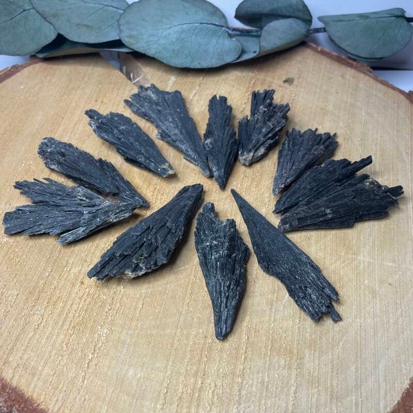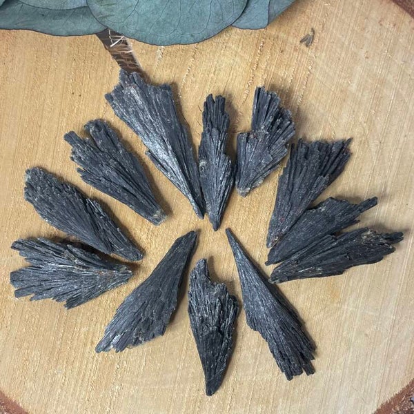Je ontvangt een van de stukjes zwarte kyaniet van de foto's. Kleuren van de foto's kunnen licht afwijken. Elke steen is een uniek natuurproduct. Afkomst: Brazilië.