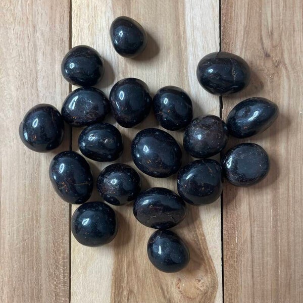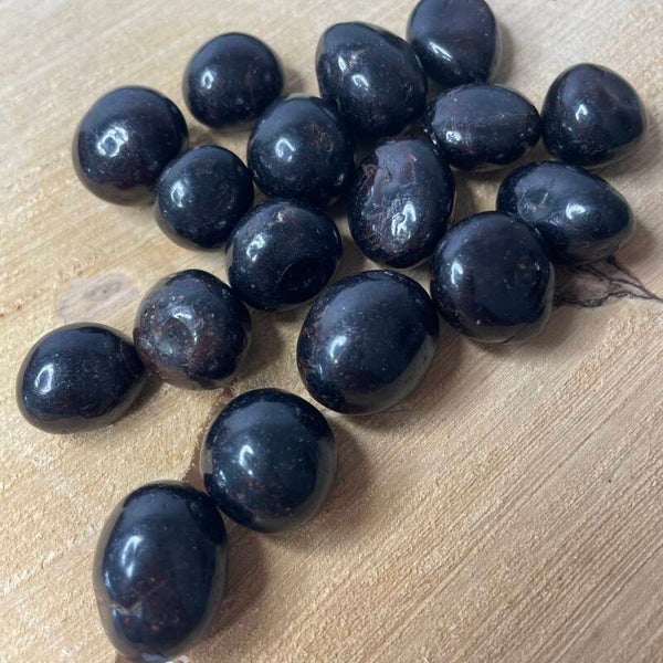 Je ontvangt een van de granaat trommelstenen van de foto's. Deze stenen zijn vrij rond van vorm. Kleuren van de foto's kunnen licht afwijken. Elke steen is een uniek natuurproduct.