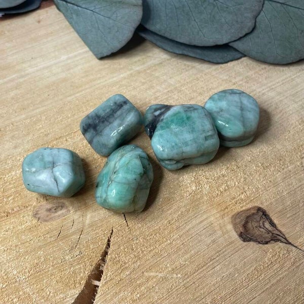 Je ontvangt een van de smaragd trommelstenen van de foto's. Kleuren van de foto's kunnen licht afwijken. Elke steen is een uniek natuurproduct.